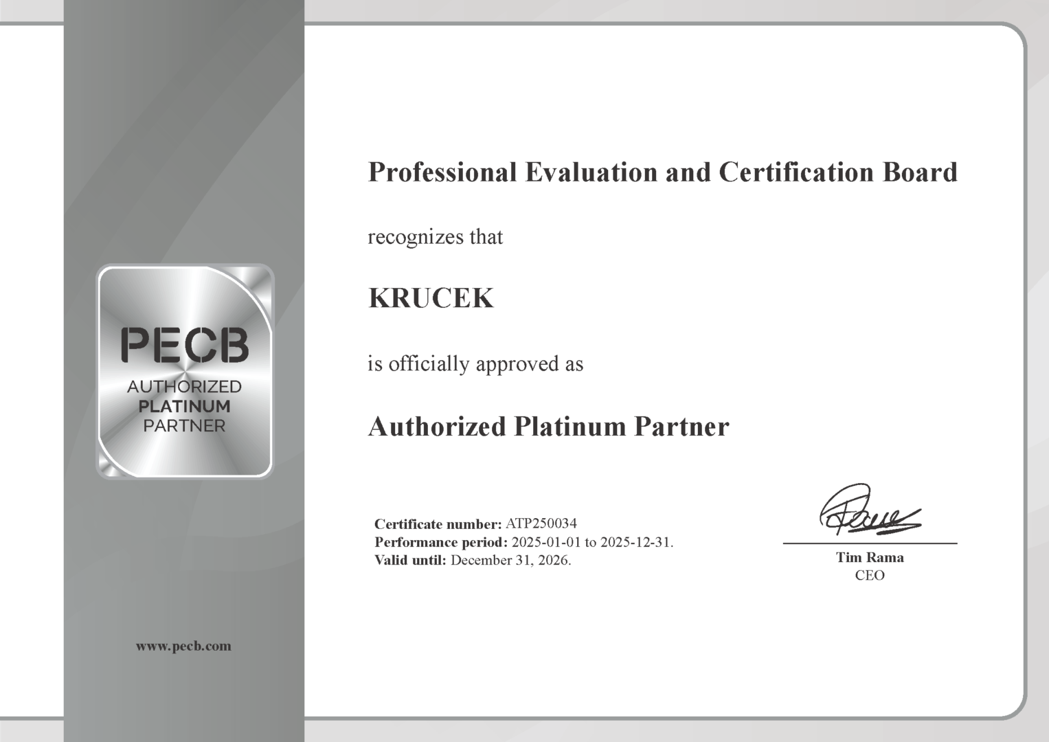 It’s official. We hold in our hands our new certificate confirming that our company has achieved the prestigious PECB Platinum Partner level.