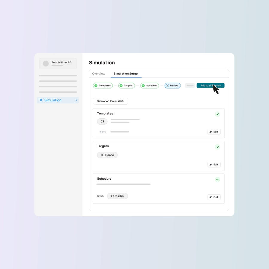 Vytvorte si odolnosť podľa svojich potrieb. Vyberte si medzi rýchlymi samoobslužnými šablónami alebo personalizovanými simuláciami, ktoré sa zameriavajú na konkrétne riziká a medzery v znalostiach.